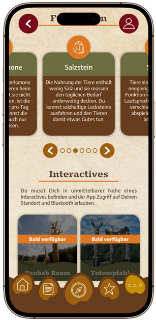 Die App bietet eine einfach zu bedienende Übersicht über den Park, sowie Auflistungen der Tiere und Attraktionen. Die Besucher erfahren interessante Fakten über die Herkunft der Tiere und wo sie im Park zu finden sind.