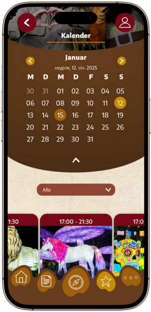 Dank des Eventkalenders können die Besucher auf einem Blick sehen, wann welche Shows oder Tierfütterungen stattfinden.